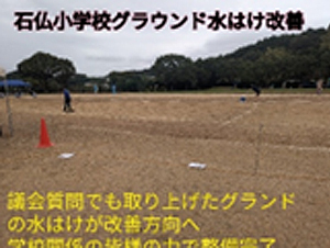 地域の皆様からのお声から令和3年12月議会より進め、芝生の除去など学校運営協議会などのご尽力もあり、改善してしてきました。(令和7年10月)